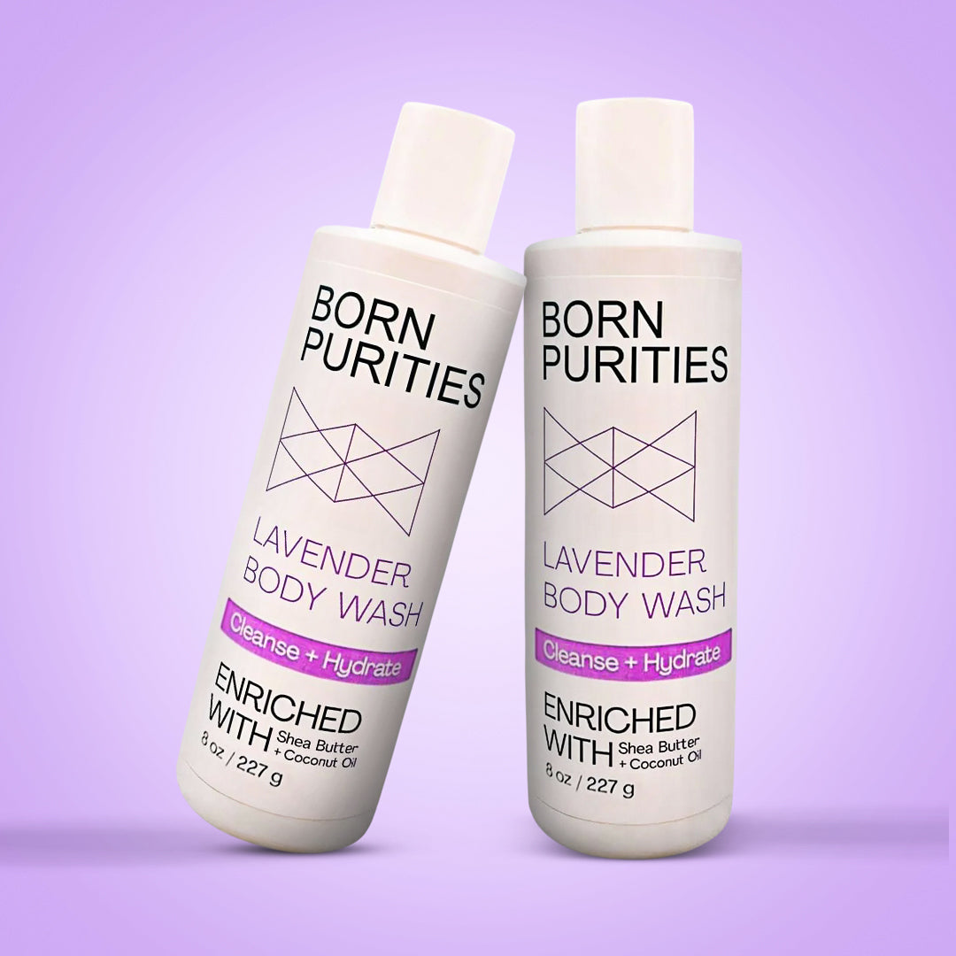 • Load image into Gallery viewer, Collection of Born Purities body wash bottles on a white background